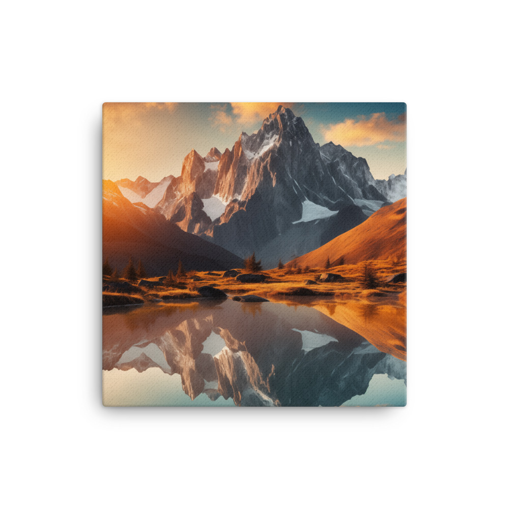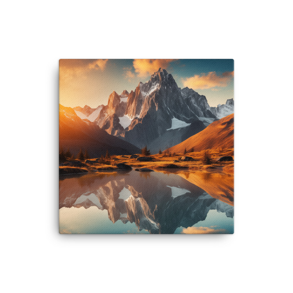 Alpine Majesty” is a stunning collection of canvas prints, each depicting the awe-inspiring beauty of mountain landscapes at sunset. These artworks capture the tranquil yet powerful presence of alpine peaks, with the sun’s dying light casting a golden glow over the mirrored surfaces of crystal-clear lakes. The vibrant colors of the sky, reflecting on the water’s surface, create a symphony of warm tones that enhance the majestic tranquility of the mountain scenery.