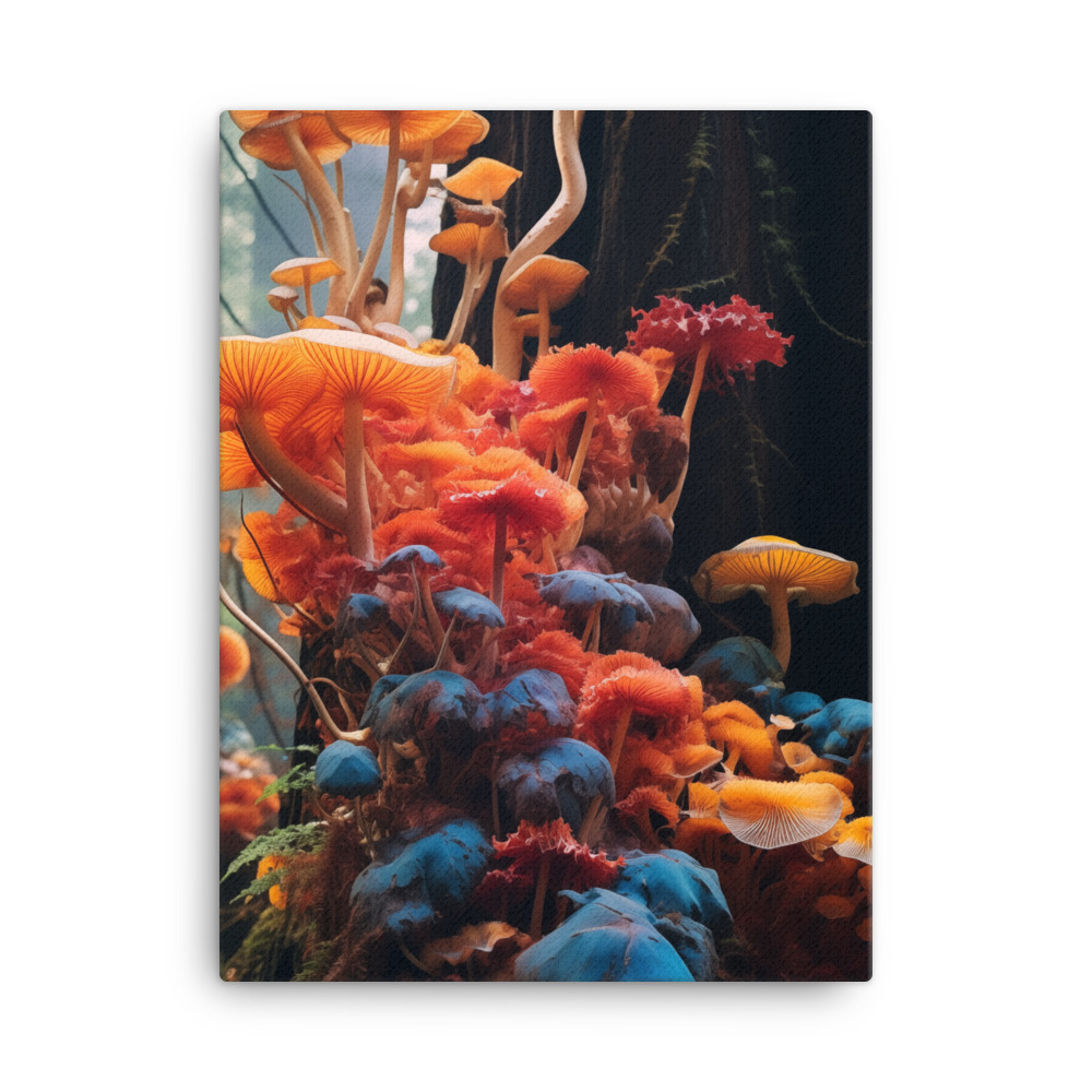 Welcome to “Fungal Fantasia,” a mesmerizing collection of canvas prints that celebrate the diverse and vibrant world of fungi. Each artwork in this collection is a feast for the eyes, featuring mushrooms in a myriad of shapes, sizes, and colors, all set against the enchanting backdrop of their natural forest environments. These prints capture the mystical allure of mushrooms, from the delicate gills of a single cap to the intricate clusters that seem to tell a story of symbiosis and survival.