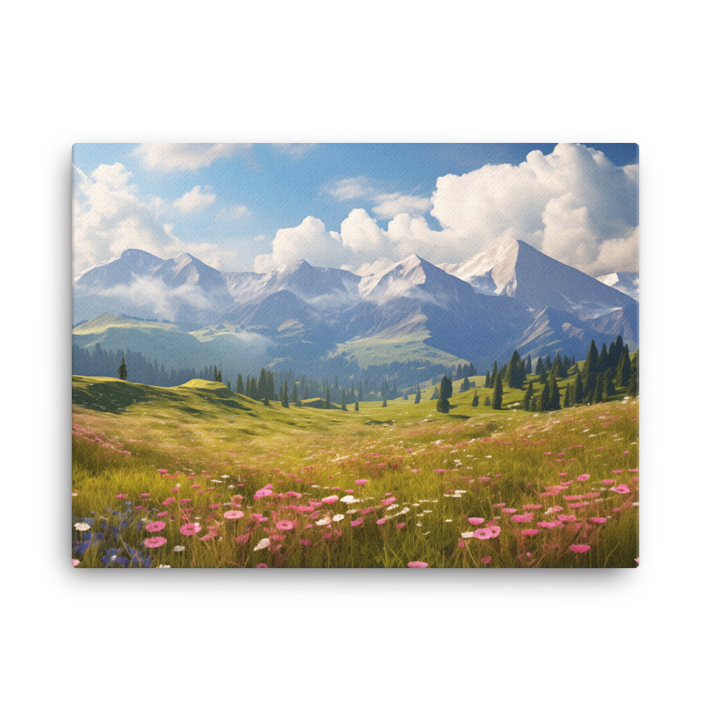 Embrace the beauty of the great outdoors with “Meadow Whispers,” a collection of canvas prints that celebrate the vibrant life of mountain meadows. Each artwork in the collection is a rich tapestry of colors, featuring wildflowers in full bloom set against the dramatic backdrop of towering mountains and expansive skies. These prints capture the essence of a perfect day in nature, where the air is filled with the scent of fresh blossoms and the sound of the gentle breeze.
