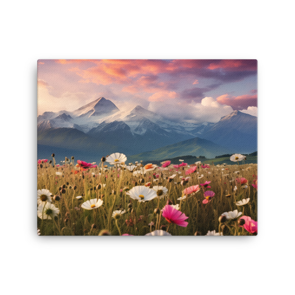 Embrace the beauty of the great outdoors with “Meadow Whispers,” a collection of canvas prints that celebrate the vibrant life of mountain meadows. Each artwork in the collection is a rich tapestry of colors, featuring wildflowers in full bloom set against the dramatic backdrop of towering mountains and expansive skies. These prints capture the essence of a perfect day in nature, where the air is filled with the scent of fresh blossoms and the sound of the gentle breeze.