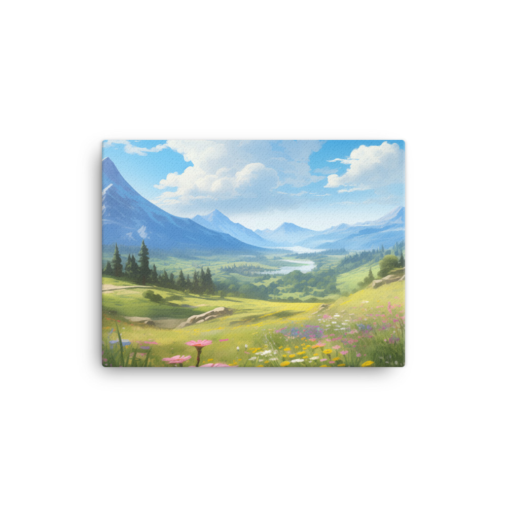 Embrace the beauty of the great outdoors with “Meadow Whispers,” a collection of canvas prints that celebrate the vibrant life of mountain meadows. Each artwork in the collection is a rich tapestry of colors, featuring wildflowers in full bloom set against the dramatic backdrop of towering mountains and expansive skies. These prints capture the essence of a perfect day in nature, where the air is filled with the scent of fresh blossoms and the sound of the gentle breeze.