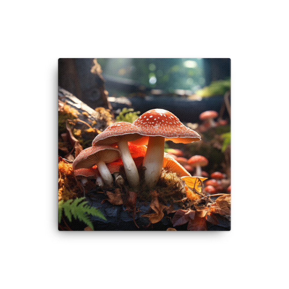 Delve into the “Mystical Mycelium,” a captivating collection of canvas prints that unveil the hidden jewels of the forest floor. Each artwork in this series is a vibrant homage to the enchanting world of fungi, captured in their natural habitat with exquisite detail. The radiant colors of the mushrooms contrast beautifully against the earthy tones of the woodland, illuminated by shafts of light that filter through the canopy above.
