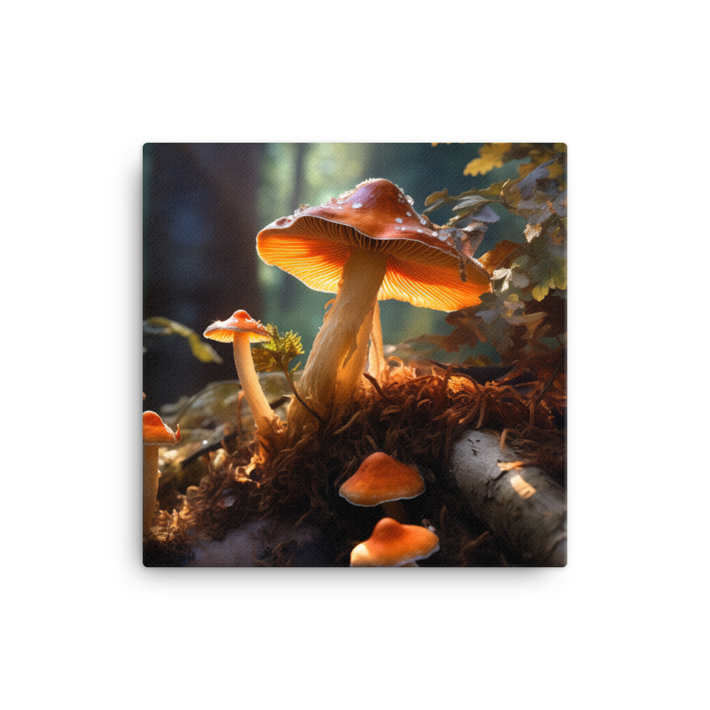 Delve into the “Mystical Mycelium,” a captivating collection of canvas prints that unveil the hidden jewels of the forest floor. Each artwork in this series is a vibrant homage to the enchanting world of fungi, captured in their natural habitat with exquisite detail. The radiant colors of the mushrooms contrast beautifully against the earthy tones of the woodland, illuminated by shafts of light that filter through the canopy above.